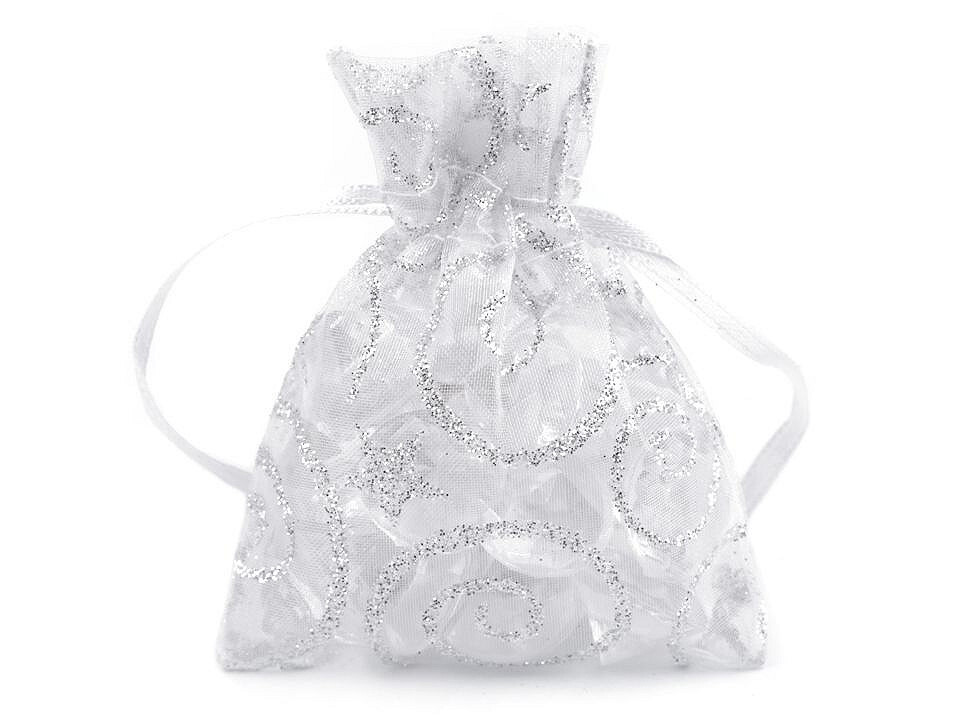 Dárkový pytlík 6,5x9 cm organza s glitry - 100 ks - 5 bílá stříbrná