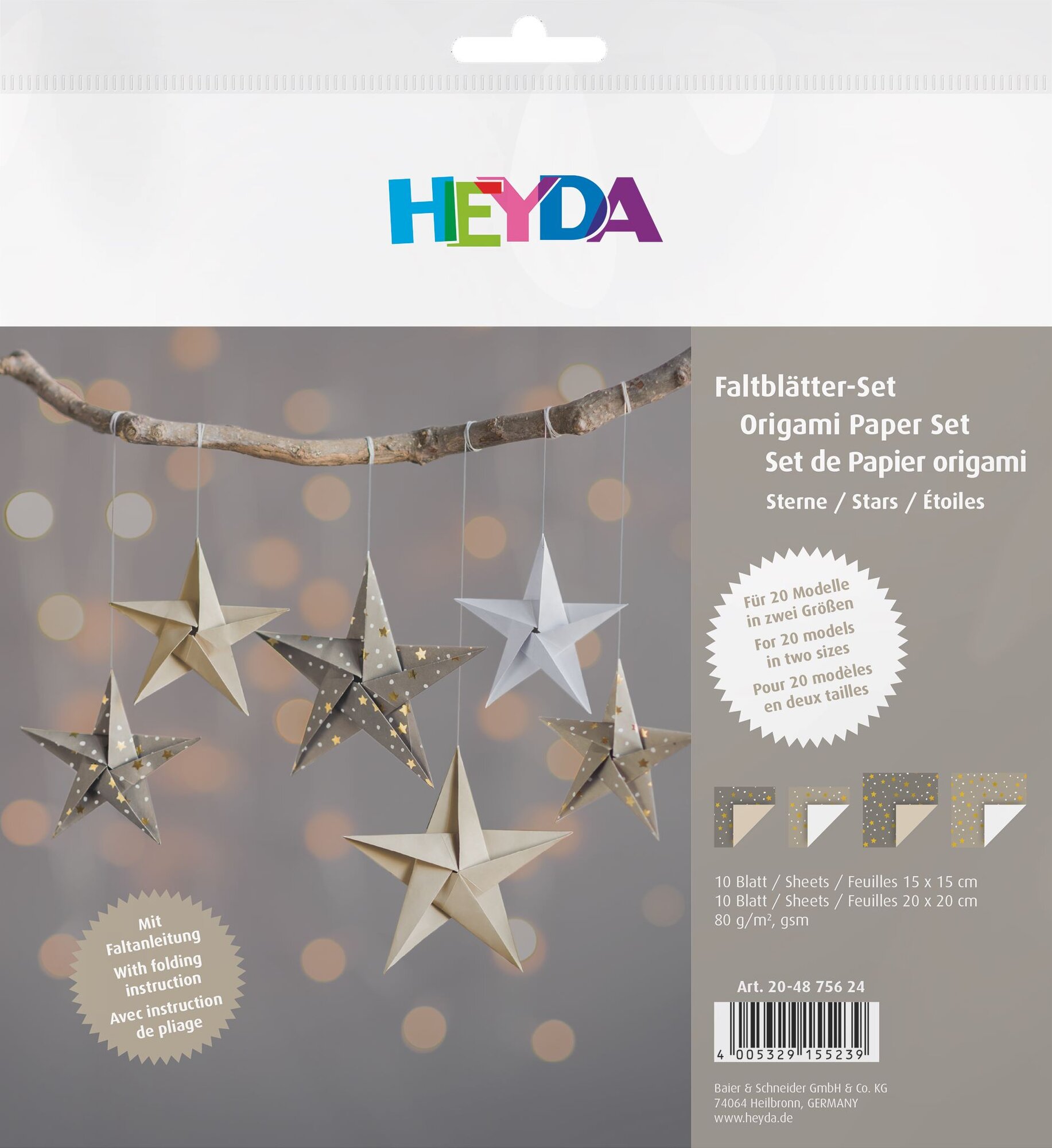 Sada origami papírů 20x20 hvězdy šedohnědé