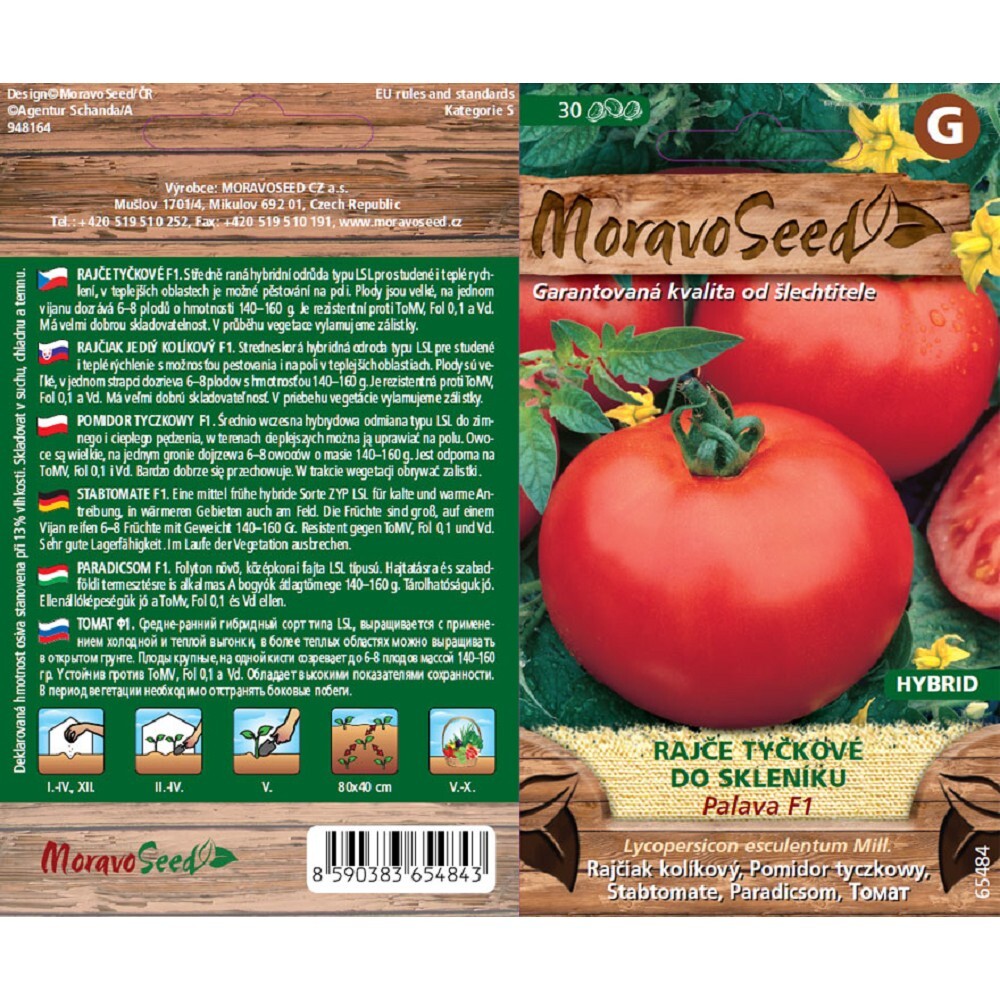 Solanum lycopersicum L.TOP PALAVA F1 Středně raná odrůda určená pro rychlení ve sklenících i fóliových krytech. V teplejších oblastech je možné pěstování i na poli. Plody jsou velké kulovité, pevné, odolné proti praskání. Při plné zralosti jsou plody tmavě červené, dozrávají jednotně a lze sklízet celé vijany.Obsah: