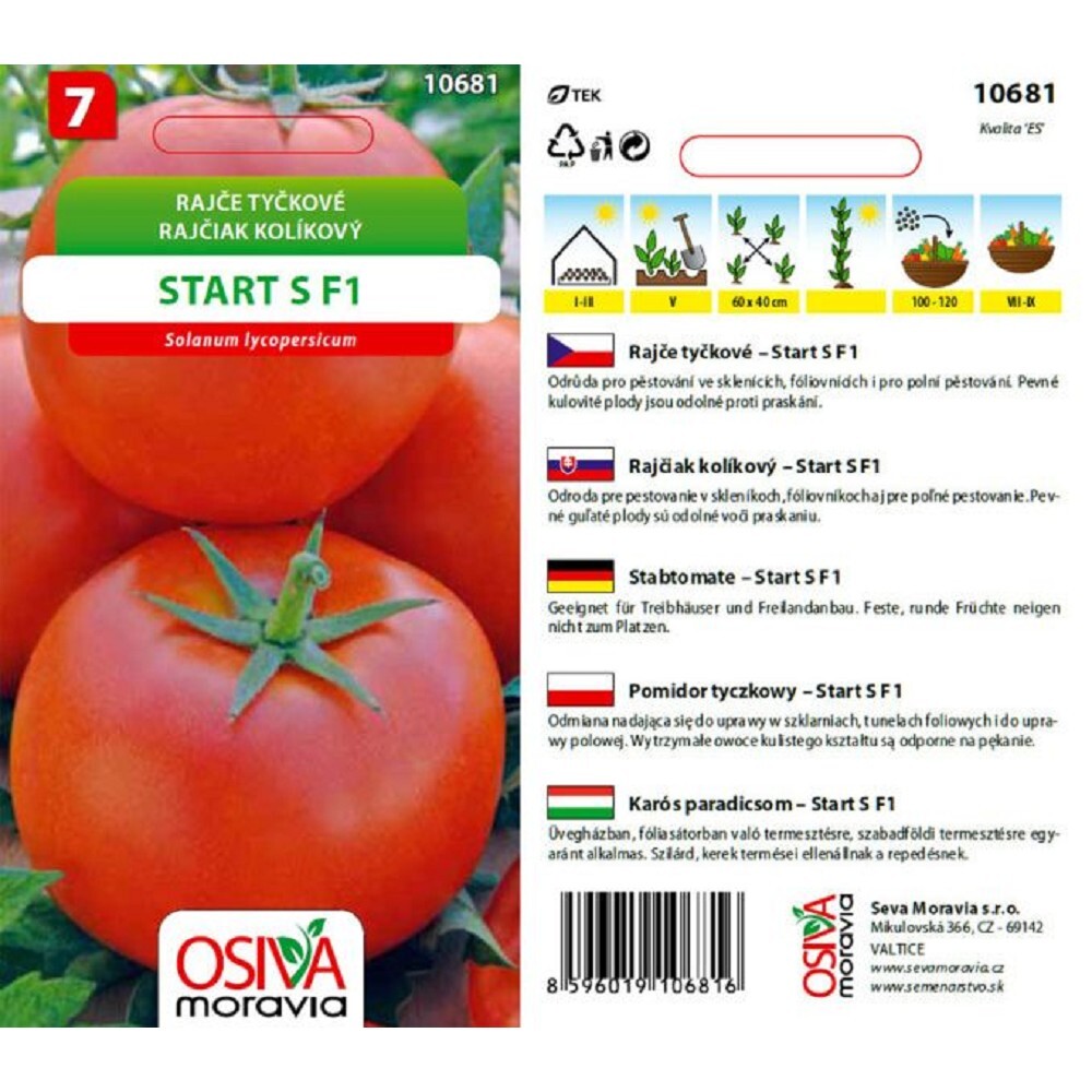 Solanum lycopersicum L.START S F1Raná tyčková odrůda rajčete, která je vhodná pro pěstování v záhonech či ve sklenících. Plodí středně velké plody o hmotnosti 70-90 g, které dozrávají do sytě červené barvy. Rostlina se vyznačuje velkou odolností plodů vůči popraskání.Obsah: