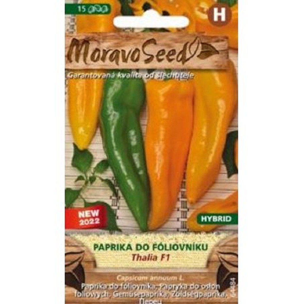 Capsicum annuum L.THALIA F1Poloraná odrůda sladké papriky s dlouhými, žlutými, úzce trojúhelníkovitými plody. Je určená pro pěstování v krytech. Plody jsou před dozráním středně zelené, ve zralosti sytě žluté s vysokým leskem a nasládlou šťavnatou chutí.Obsah: