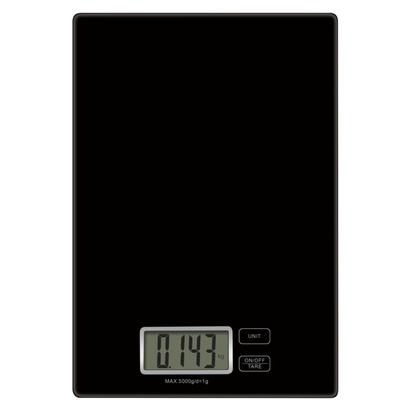 automatické vypnutí: po 2 minutách|barva: černá|Bluetooth: ne|BMI index - měření tuku, vody a svalové hmoty: ne|funkce dovažování: ano|indikace slabých baterií: ano|indikátor přetížení: ano|jednotky váhy: g, oz, lb, kg|LCD displej: ano|max. zátěž: 5 kg|napájení: 1× 3 V CR2032 (součástí balení)|paměť: ne|podsvícený displej: ne|povrch váhy: tvrzené sklo|přesnost vážení: 1 g|prodejní obal: 1 ks, krabička|produkt: kuchyňská váha|rozměr: 15 × 152 × 219 mm