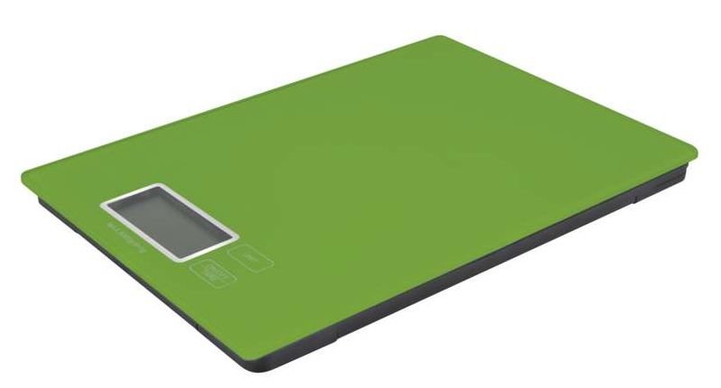 automatické vypnutí: po 2 minutách|barva: zelená|Bluetooth: ne|BMI index - měření tuku, vody a svalové hmoty: ne|funkce dovažování: ano|indikace slabých baterií: ano|indikátor přetížení: ano|jednotky váhy: g, oz, lb, kg|LCD displej: ano|max. zátěž: 5 kg|napájení: 1× 3 V CR2032 (součástí balení)|paměť: ne|podsvícený displej: ne|povrch váhy: tvrzené sklo|přesnost vážení: 1 g|prodejní obal: 1 ks, krabička|produkt: kuchyňská váha|rozměr: 15 × 152 × 219 mm