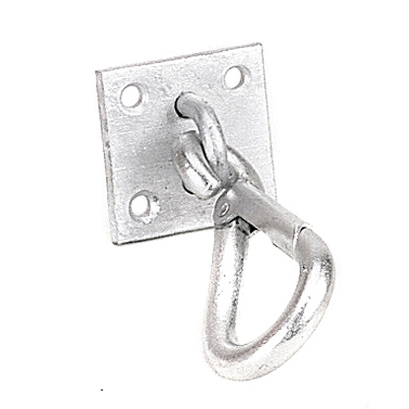 Jednoduché a praktické upevnění kbelíku: kovová destička s rychloupínací západkou. Připevněte na stabilní stěnu nebo stranu přívěsu pomocí čtyř šroubů.