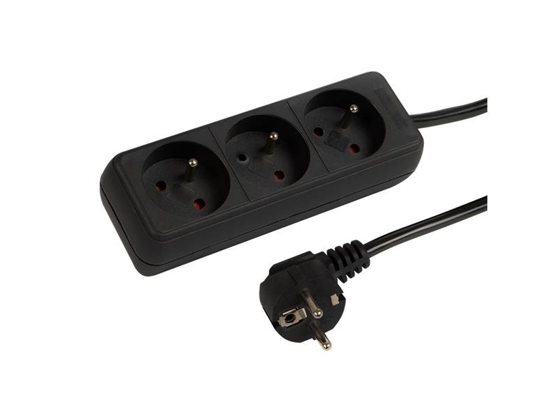 Napájecí kabel PR-370P s úhlovou zástrčkou a 3 uzemněnými zásuvkami.