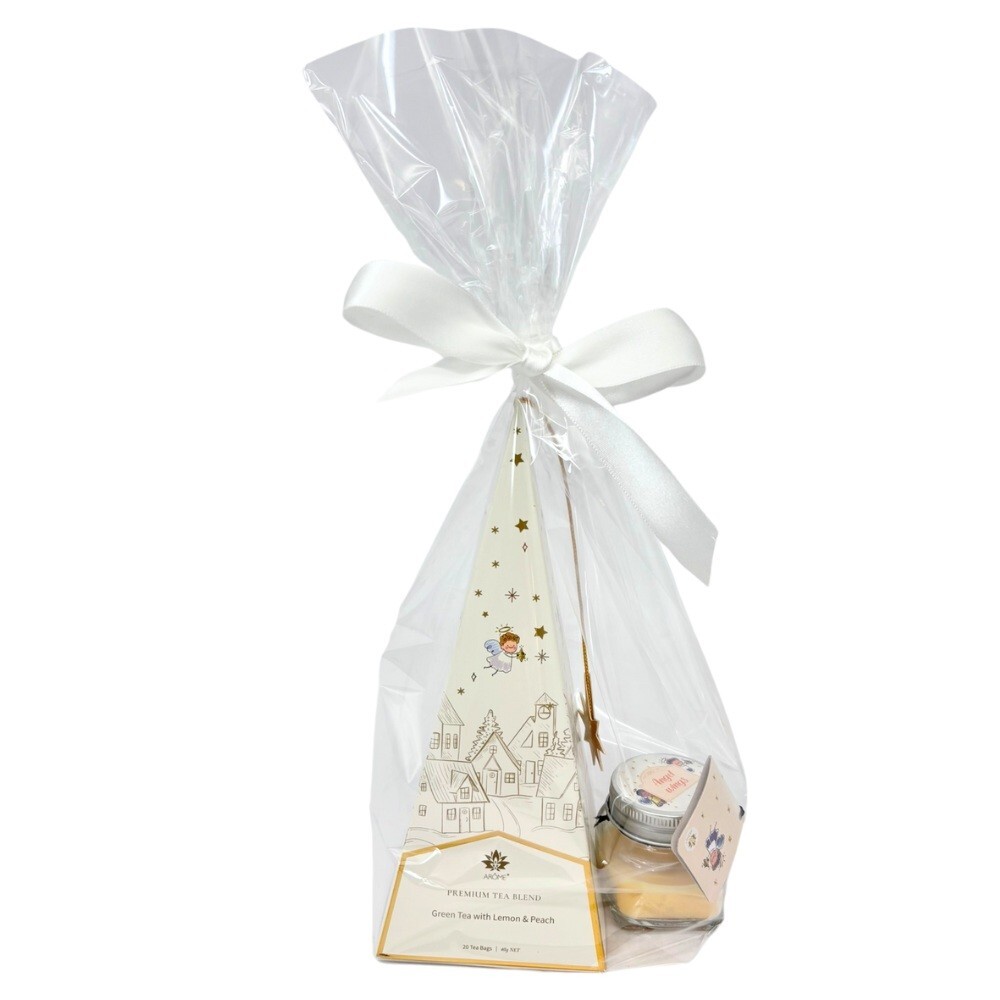 HOME ELEMENTS Vánoční set svíčka 28g, čaj zelený s citrónem a broskví Andělíček