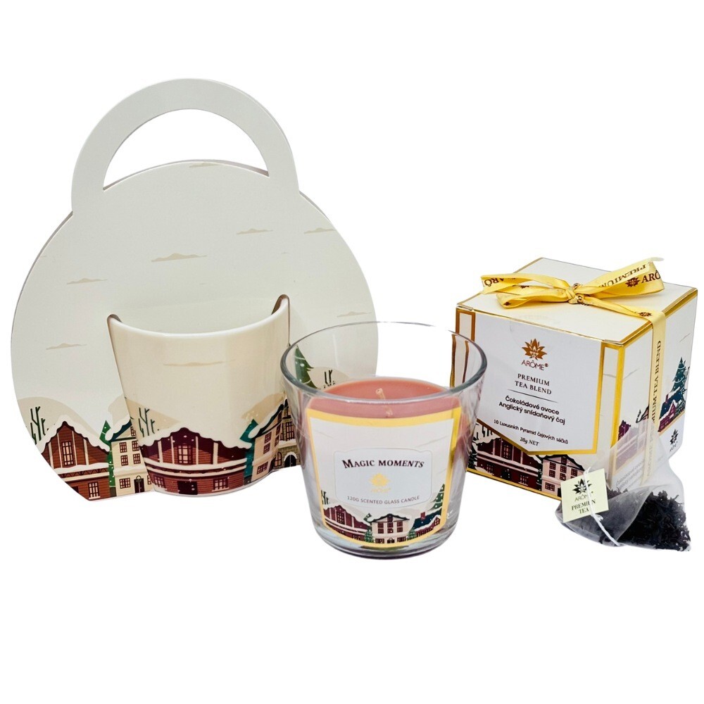 ARÔME Vánoční dárkový set - hrnek, čaj a svíčka Město