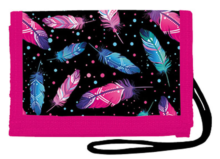 Školní peněženka na krk o rozměru 126 x 80 mm se šňůrkou s plastovým bezpečnostním uzávěrem. Zapínání na suchý zip, 5 vnitřních kapes, v zadní části je průhledná kapsička na průkazku. Materiál je voděodolný. číst celé