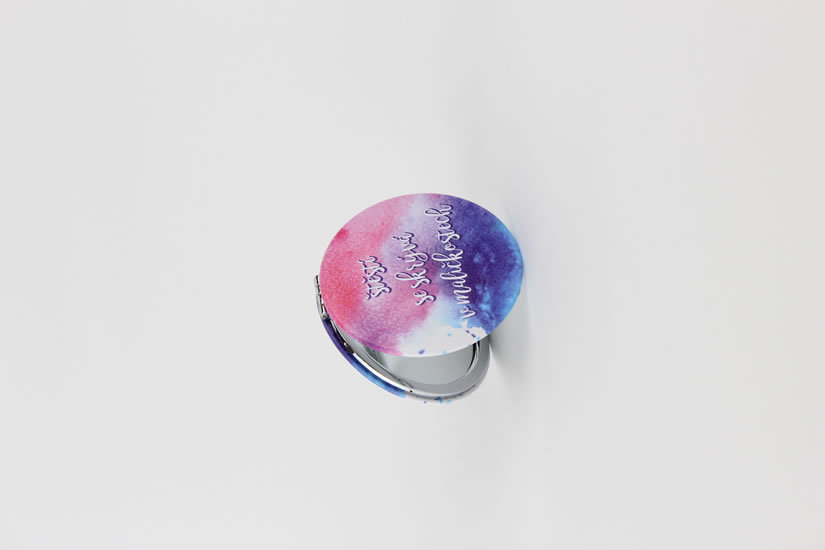 Zavírací zrcátko Happy Spirit s potiskem trendy designů nebo věnováním, s normálním a zvětšovacím sklíčkem. Průměr 7 cm
