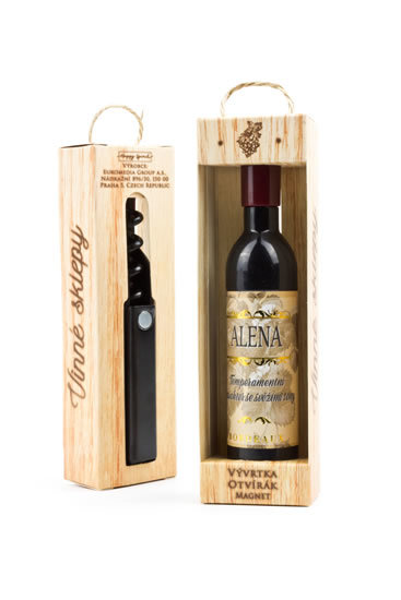 Vývrtka ve tvaru vinné lahve s originálním potiskem viněty je vhodným dárkem pro všechny milovníky vína. Užijte si svoji chvilku v dobré společnosti! Vývrtka s magnetem pro uchycení na lednici je balena v dárkové krabičce. Rozměr 12,5 x 3,5 x 2,5 cm.