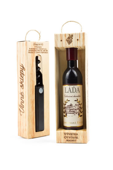 Vývrtka ve tvaru vinné lahve s originálním potiskem viněty je vhodným dárkem pro všechny milovníky vína. Užijte si svoji chvilku v dobré společnosti! Vývrtka s magnetem pro uchycení na lednici je balena v dárkové krabičce. Rozměr 12,5 x 3,5 x 2,5 cm.