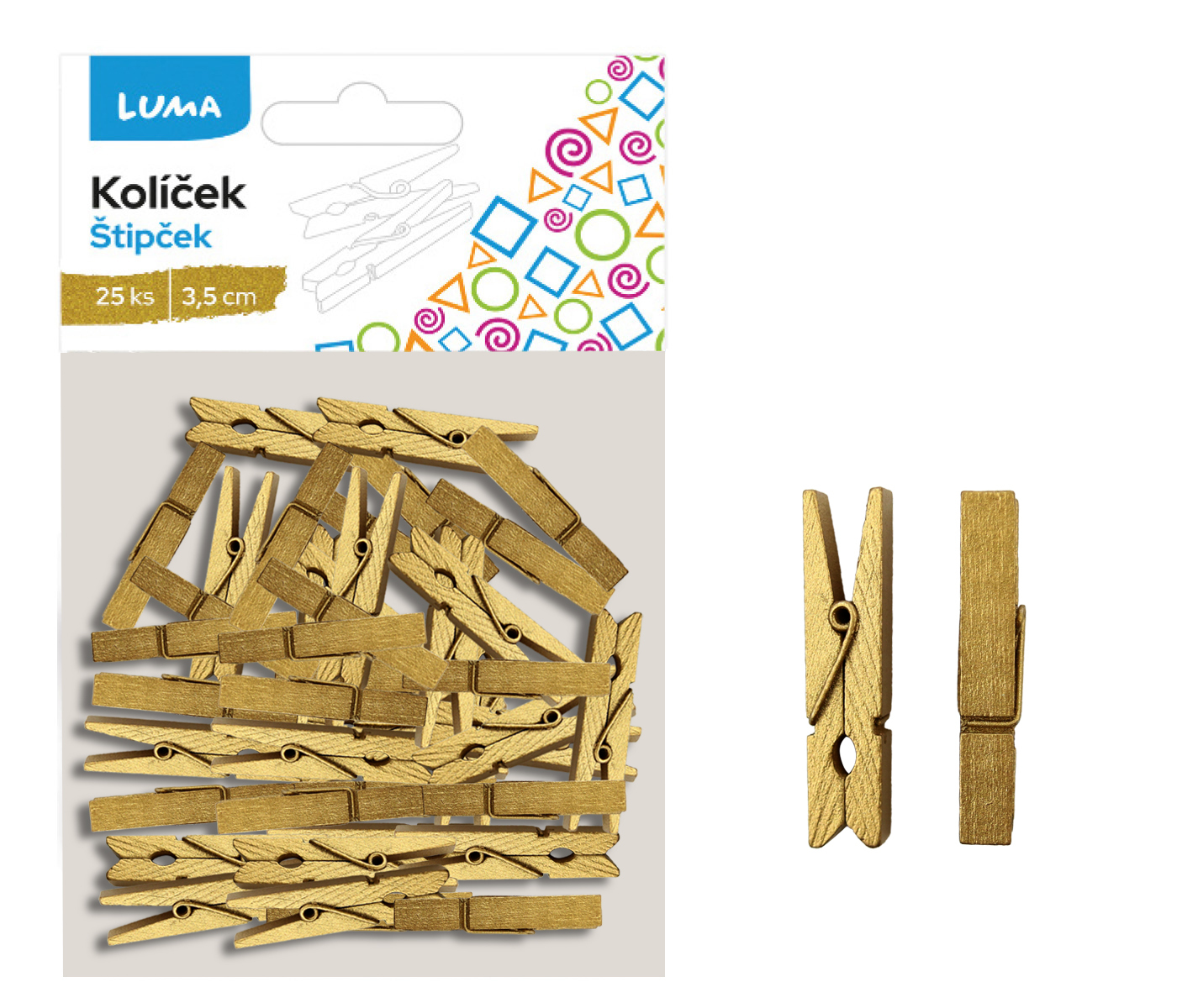 Kolíček 3,5cm zlatý, 25ks LUMA