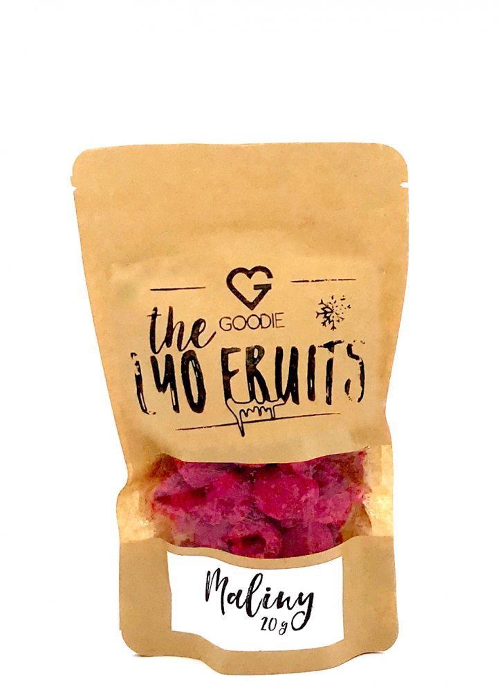 Lyofilizované neboli mrazem sušené maliny si díky šetrnému zpracování lyofilizací uchovávají většinu původních vlastností, jako je vůně, chuť, barva a živiny. Jsou krásně křupavé, lehké a výživné. Lyofilizace: Modernější a efektivnější způsob sušení ovoce oproti klasickému je hluboké a rychlé zmrazení ovoce a následné sušení pod nízkým tlakem. Díky tomuto procesu si ovoce zachovává většinu svých původních vlastností jako je chuť, tvar, barva, aroma. Při klasickém sušení se ovoce suší na slunci nebo v sušičkách při vysokých teplotách. Dojde většinou ke změně chuti, barvy, tvaru a v neposlední řadě nutričního profilu. Při lyofilizaci se zachovávají téměř všechny vitamíny a minerální látky v ovoci, je zbavené všech mikrobiálních nečistot a má delší trvanlivost. Použití: samostatně jako svačina pro děti i dospělé do snídaňových kaší příprava smoothie zdobení při pečení Výživové údaje na 100 g: Energetická hodnota: 900 kJ / 214 kcal Tuky: 1,9 g z toho nasycené mastné kyseliny: 0,1