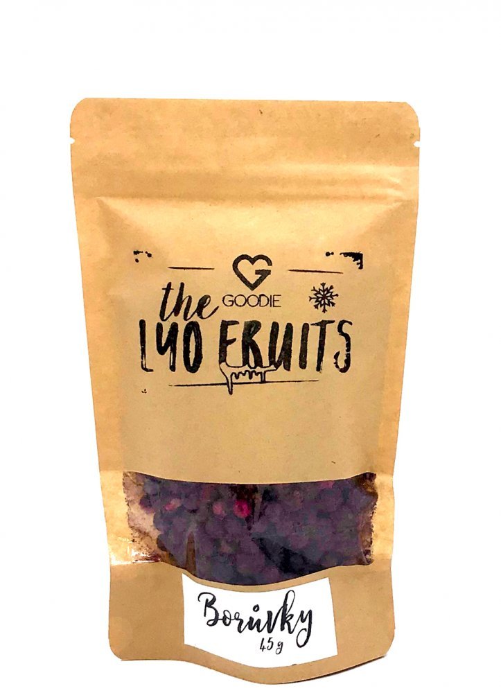Lyofilizované neboli mrazem sušené borůvky si díky šetrnému zpracování lyofilizací uchovávají většinu původních vlastností jako je vůně, chuť, barva a živiny. Jsou krásně křupavé, lehké a výživné. Lyofilizace: Modernější, efektivnější a sofistikovaný způsob sušení ovoce oproti klasickému je hluboké a rychlé zmrazení ovoce a následné sušení pod nízkým tlakem. Díky tomuto procesu si ovoce zachovává většinu svých původních vlastností jako je chuť, tvar, barva, aroma. Při klasickém sušení se ovoce suší na slunci nebo v sušičkách při vysokých teplotách. Dojde většinou ke změně chuti, barvy, tvaru a v neposlední řadě nutričního profilu. Při lyofilizaci se zachovávají téměř všechny vitamíny a minerální látky v ovoci, je zbavené všech mikrobiálních nečistot a má delší trvanlivost. Použití: samostatně jako svačina pro děti i dospělé do snídaňových kaší příprava smoothie zdobení při pečení Výživové údaje na 100 g: Energetická hodnota: 1000 kJ / 239 kcal tuky: 3,78 g
