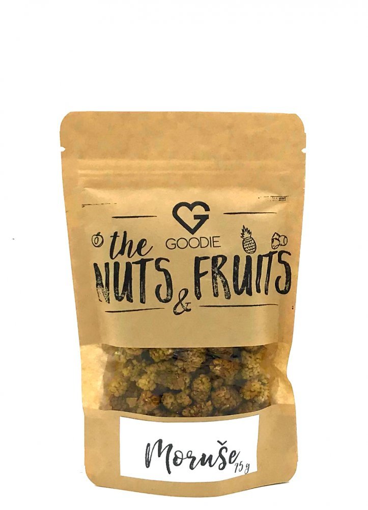 Sušené plody moruše bílé (Morus alba) mají příjemnou medově-sladkou chuť. Obsahují přirozeně vyskytující se cukry a vlákninu, hodí se jako rychlý zdroj energie. Naše sušené moruše jsou bez přidaného cukru a bez ošetření oxidem siřičitým SO2.