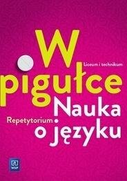 Repetytorium W pigułce zawiera zwięzłe omówienie zagadnień z zakresu nauki o języku określonych w nowej podstawie programowej dla liceum i technikum. Przypomina także podstawowe wiadomości z klas IVVIII. Informacje zostały przedstawione w sposób uporządkowany i czytelny, z wykorzystaniem licznych przykładów. Przystępny przekaz ułatwi uczniom szybkie powtórzenie wiadomości. Repetytorium będzie cenną pomocą przez cały okres nauki w liceum lub technikum. Publikacja szczególnie przydatna dla maturzystów, dlatego że zbiera i przypomina wiadomości sprawdzane na egzaminie maturalnym z języka polskiego zwłaszcza w części ustnej.