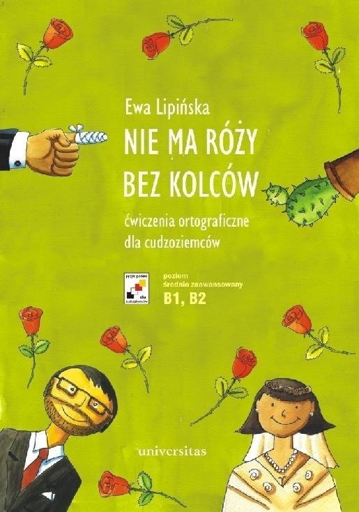 Nie ma róży bez kolców to ćwiczenia ortograficzne dla obcokrajowców uczących się języka polskiego jako obcego na poziomie średnio zaawansowanym B1 i B2. Mogą one stanowić również pomoc w pracy z młodzieżą szkolną w kraju i za granicą. Zawierają 11 zagadnień ortograficznych z bogatym zestawem różnorodnych ćwiczeń oraz dyktanda pogrupowane w trzy zestawy: opracowane teksty fabularyzowane, krótkie teksty prasowe oraz fragmenty wierszy. Mimo, że w Nie ma róży bez kolców znajduje się klucz do ćwiczeń oraz dyktand, podręcznik jest przeznaczony do pracy z nauczycielem. Opracowanie graficzne ma ułatwić zapamiętywanie reguł, poszczególne ikonki wyznaczają stałe miejsca różnych części: na początku każdego zagadnienia pojawia się rysunek róży, w środku - kaktusa, jeżyk otwiera część praktyczną, a kasztany kończą lekcję. Niniejszy zbiór ćwiczeń stanowi pomoc w przygotowaniach do egzaminów biegłości z języka polskiego jako obcego.