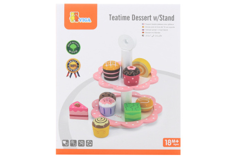 Dřevěné dezerty se stojánkem. Balení obsahuje 9 dortíků a stojánek. Rozměry cca 17 x 17 x 20 cm. Věk 18m+ číst celé