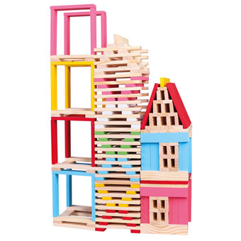 - Obsahuje vícebarevné dřevěné dílky určené na sestavení městského prostředí.