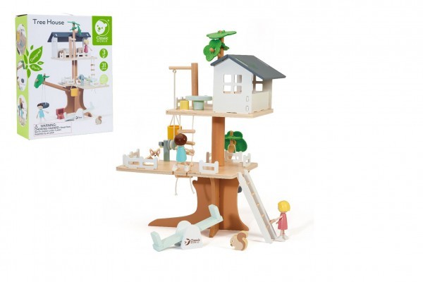 Dům na stromě s doplňky dřevo 31ks v krabici 29x36x11cm