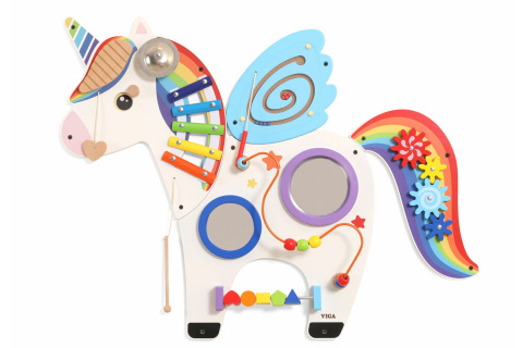 Dřevěná nástěnná hra s motivem jednorožce. Velikost cca 83,6 x 66,8 x 9,5 cm. Rozměry balení cca 44,5 x 43 x 22 cm. Věk 18m+