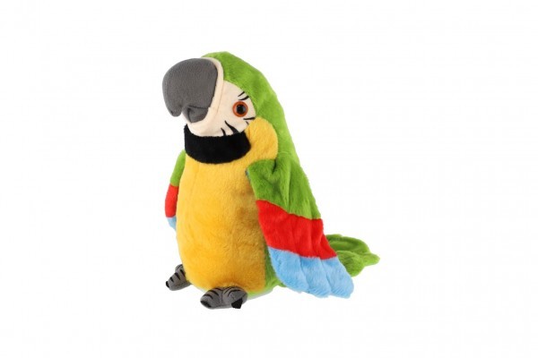 Papoušek opakující věty plyš na baterie se zvukem v sáčku 10x20x12cm