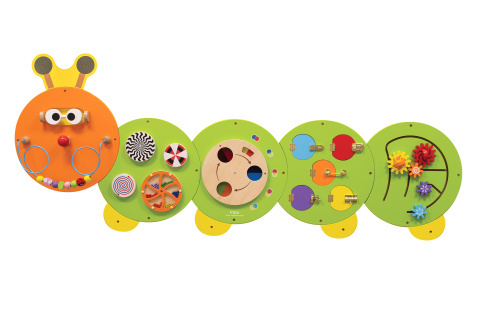 Dřevěná nástěnná hra ve tvaru housenky. Obsahuje spoustu prvků pro rozvoj dětské motoriky. Rozměry balení cca 46x46x30 cm. ozměry složeného výrobku 83x185 cm. Věk 3 číst celé