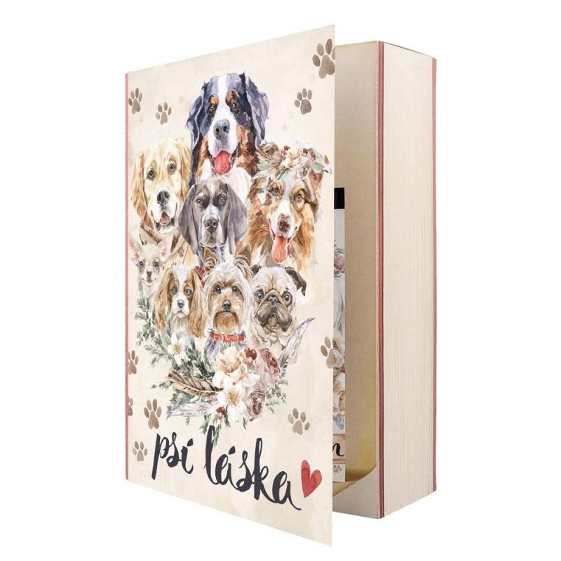 Dárková sada malá kniha - Psí láska je originální kosmetický balíček, který potěší každého, kdo má rád své čtyřnohé přátele. Nejenže pečuje o tělo, ale zároveň přináší i pocit radosti díky své jedinečné podobě a obsahu.