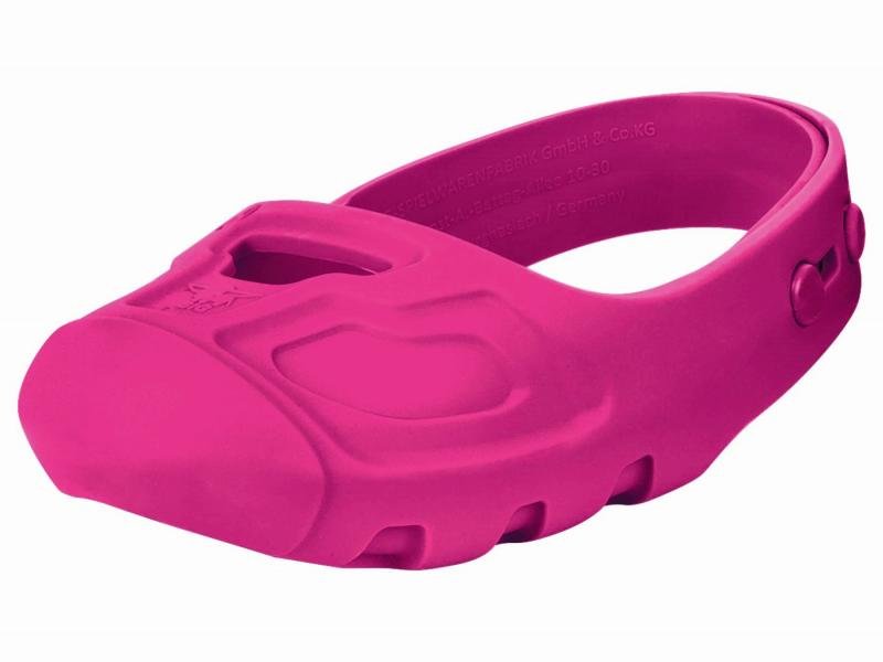 Ochranné návleky na botičky v růžové barvě pro jízdu např. na odrážedle, cyklokole apod. Nezanechávají stopy na podlaze, protiskluzová úprava. Snadno nastavitelná velikost pomocí háčků a oček. Vhodné pro dětskou obuv velikosti 21-27.