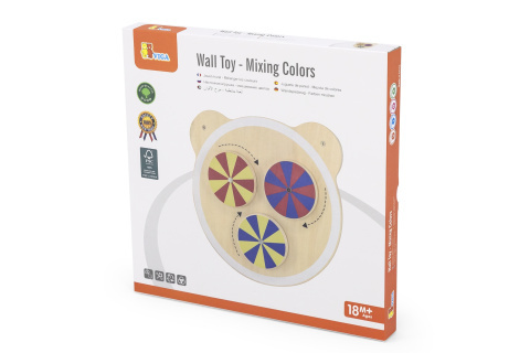Hračka se snadno zavěsí na zeď a její kompaktní rozměry 30x30x2,4 cm ji činí praktickou i pro menší prostory. Je ideální pro děti od 18 měsíců, které prostřednictvím hry zábavnou formou trénují základní schopnosti potřebné pro další učení a rozvoj.