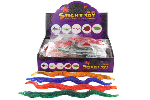 Gumový lepící had o velikosti cca 25 x 3 cm. Baleno v igelitovém sáčku. Rozměry balení cca 18 x 9 cm. Věk 3+