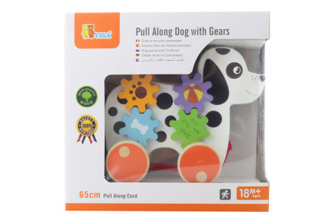 Dřevěná tahačka pes s ozubenými kolečky, která se točí, když pejsek jede. Délka provázku je 65 cm. Rozměry pejska cca 19,8 x 17,2 x 4,5 cm. Rozměry balení cca 23,5 x 23 x 8,5 cm. Věk 18m+