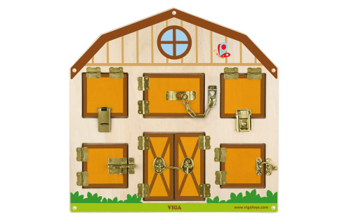 Hra spočívá v zamykání a odemykání vyřezávaných okének na dřevěné desce, za kterými se ukrývají obrázky různých zvířátek. Každé odemčení přináší radost z objevu a motivuje děti k dalším pokusům. Tento princip podporuje jemnou motoriku, koordinaci rukou a očí a zároveň rozvíjí trpělivost a logické myšlení.