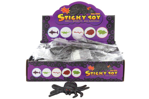 Gumový lepící pavouk o velikosti cca 8,5 x 7 cm. Baleno v igelitovém sáčku. Rozměry balení cca 14 x 8,5 cm. Věk 3+ číst celé