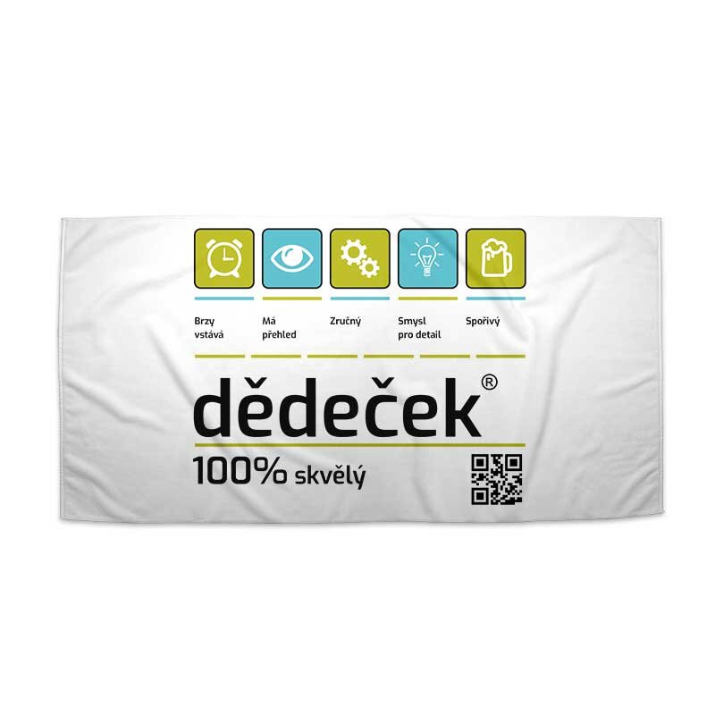 Ručník s originálním motivemPotisk se nachází na vrchní straně ručníku, který je 100% polyester. Spodní strana je čistě bílá 100% bavlna. Tento motiv nabízíme ve třech velikostech a to 30x50 cm, 50x100 cm nebo 70x140 cm. Je vyroben z měkkého, příjemného materiálu. Vyniká povrchovou úpravu proti tvoření žmolků. Okraje jsou prošívané.Ručník doporučujeme prát při teplotě 40°C, neškrobit a nesušit.(velikost se může lišit o +- 5 %)
