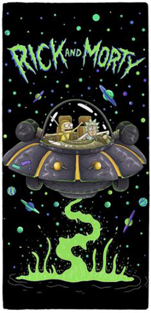 Bavlněná osuška s grafikou seriálu Rick and Morty.