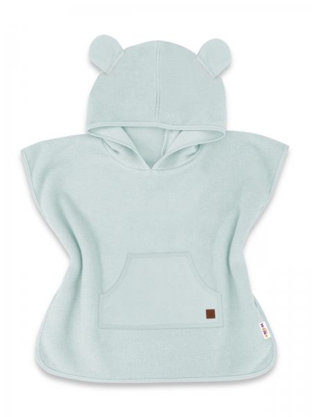 Pončo, župan s kapucí pro děti Medvídek, Baby Nellys, mátový; 68-86 (6-18m)