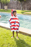 Praktické detské plážové pončo s kapucňou od Swim Essentials s nadčasovými bielo červenými prúžkami a s veľrybami si deti určite zamilujú! Rady sa do neho oblečú hneď, ako vylezú z vody. Rýchlo im vysuší pokožku a príjemne ich zahreje. Môžu sa v ňom hrať alebo behať okolo vody bez toho, aby im bola zima.