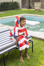 Plážové pončo je vyrobené zo 100% bavlny. Je ľahké a veľmi príjemné na na dotyk. Krásne farby vydržia až 180 vypraní. Je vo veľkosti 65 x 65 cm. V rovnakom dizajne môžete deťom kúpiť ďalšie produkty Swim Essentials.