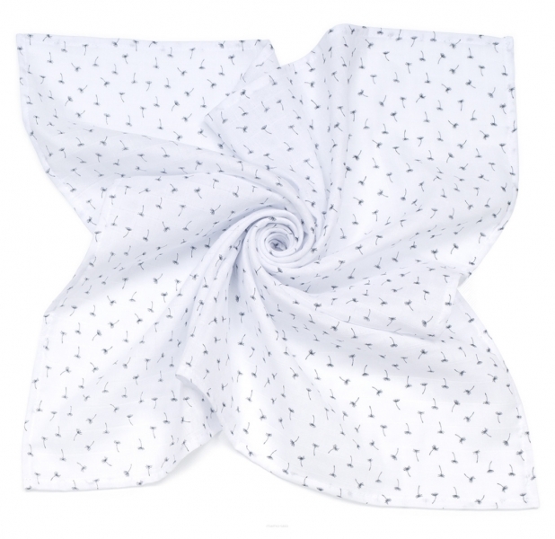 Mušelínová zavinovací deka/plenka + mini plenka Mini pampelišky, šedá/bílá