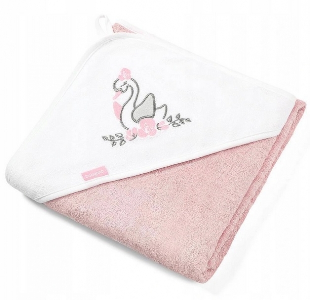 Bambusová osuška, ručník s kapucí Labuť 85x85cm - růžová, BabyOno