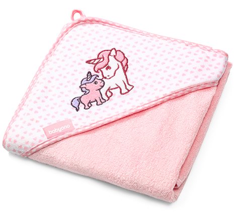 BabyOno Bambusová osuška s kapucí Jednorožec - růžová, 100 x 100 cm