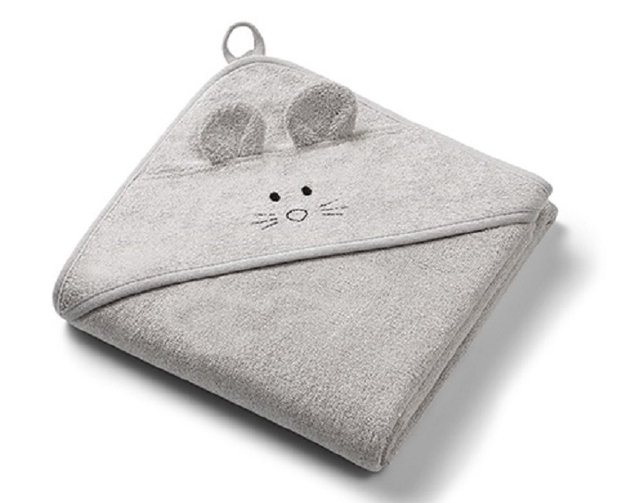 Bambusová osuška pro miminko s kapucí Myška, 100x100cm - šedá