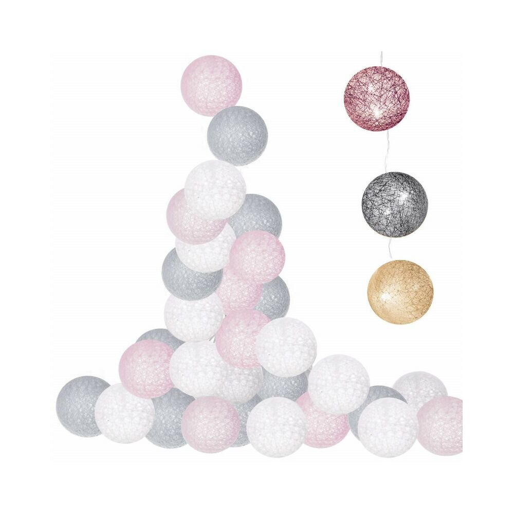 LED světelný řetěz Bavlněné koule 6cm - 2m, 10LED, 2xAA, teplá bílá