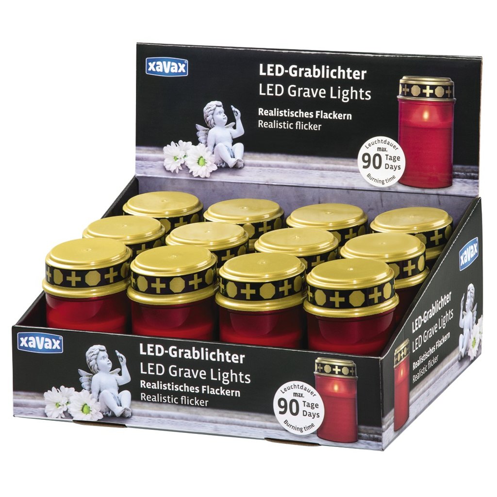 Xavax LED hřbitovní svíce, min. 500 hodin svícení, červená