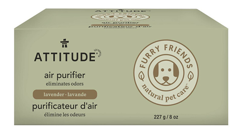 Přírodní čistící osvěžovač vzduchu Furry Friends pro zvířecí mazlíčky - Kdo žije s chlupáčem v jedné domácnosti, ví moc dobře, že zvířecího pachu je někdy až příliš. Řešením je přírodní osvěžovač vzduchu ATTITUDE Furry Friends, který díky dřevěnému uhlí a levandulové vůni zpříjemní společně strávený čas s domácími mazlíčky u vás doma. Obsahuje aktivní přírodní dřevěné uhlí, které přirozeně čistí a absorbuje nečistoty ve vzduchu. Účinně eliminuje pachy. Najdete v něm také pryskyřici, která dlouhodobě eliminuje pachy. Je vyrobený z rostlinných a minerálních surovin, neobsahuje umělé chemické složky. Uvolňuje příjemnou a osvěžující vůni levandule a eukalyptu. Spolehlivě eliminuje pachy v oblasti až 11 m2. V závislosti na velikosti místnosti vydrží až 6 týdnů. Osvěžovač je díky přírodním materiálům snadno recyklovatelný a rozložitelný.
