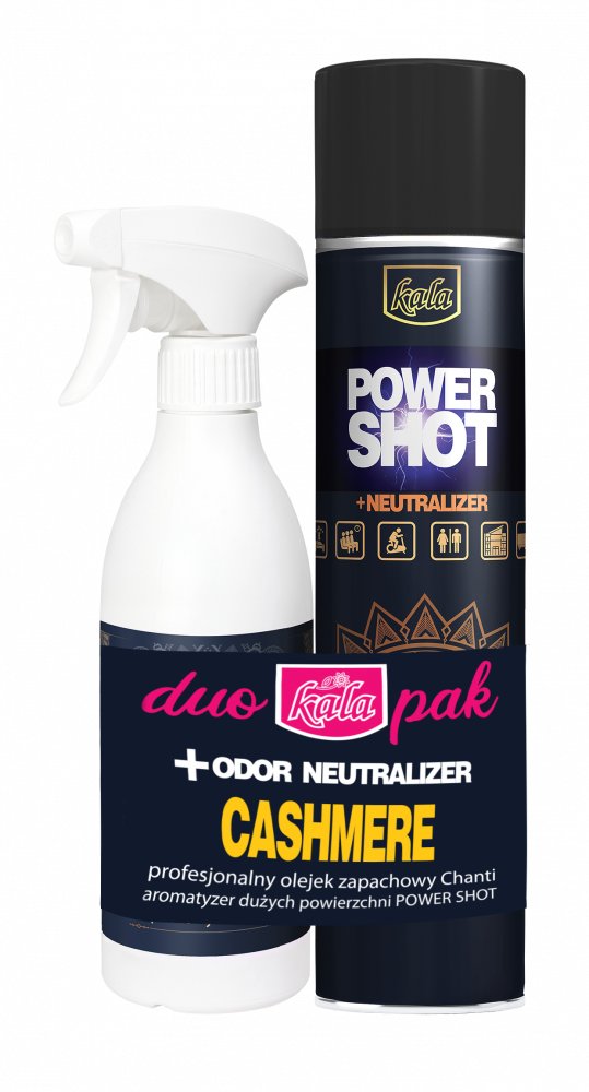Zapomeňte na nepříjemné pachy a užijte si příjemně provoněný prostor díky revolučnímu neutralizátoru pachů a osvěžovači aroma Kala POWER SHOT. Jedno stisknutí ventilu dokáže neutralizovat pachy na ploše až 200 m3 a zároveň prostor dlouhodobě osvěžit nádhernou vůní kašmíru.