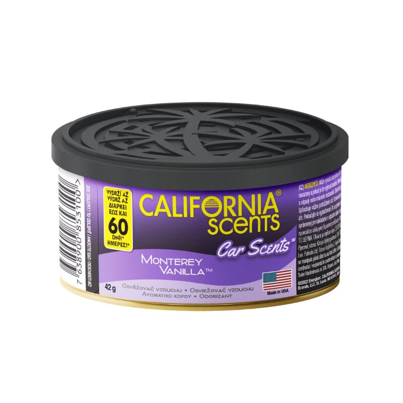 California Scents Monterey Vanilla je praktická a elegantní voňavá plechovička, která snadno padne do držáku nebo přihrádky vašeho vozu. Díky speciální formě uvolňuje přírodní a osvěžující vůni vanilky, která příjemně zútulní váš interiér. Vůně je navržena tak, aby vydržela až 60 dní, což znamená méně starostí a více pohodlí na vašich cestách. Užijte si sladkou, ale nevtíravou vanilkovou esenci, která zpříjemní každodenní jízdu i delší cesty.