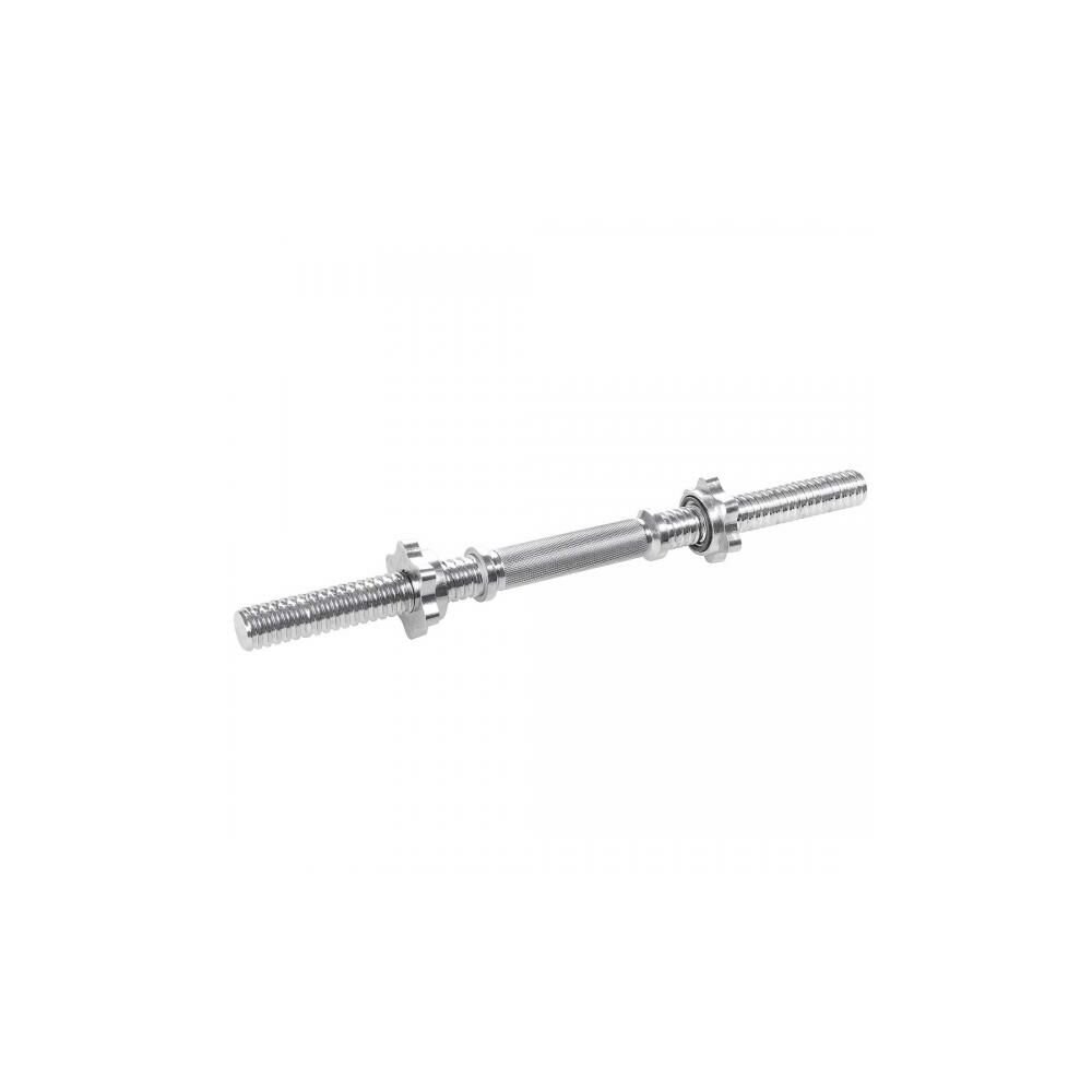 Univerzální hřídel na jednoruční nakládací činku, vhodná pro efektivní trénink doma i v tělocvičně. Délka 48cm, osa 28mm, max. zatížení 80kg, rovné provedení se závitem a maticemi.