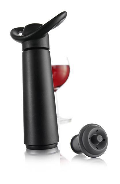 Vákuová puma na víno Vacu Vin Concerto Black(1 zátka) s priloženou vákuovou zátkou, ktorá zabezpečí, aby už otvorené víno vydržalo dlhšie. Nutné ju zasadiť do hrdla fľaše a odsať von zostávajúci vzduch. Zvukový signál "klik" oznámi dostatok odsatého vzduchu a vo vnútri fľaše sa vytvorí vákuum.